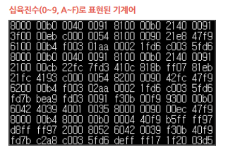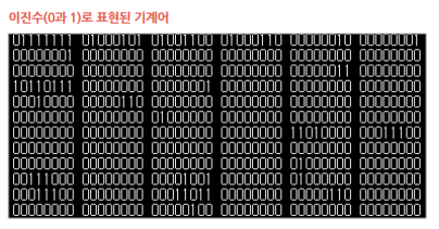 위 사진이 바로 0과1로 명령어를 ‘이진수’ 를 통해 표현한 사진 입니다.