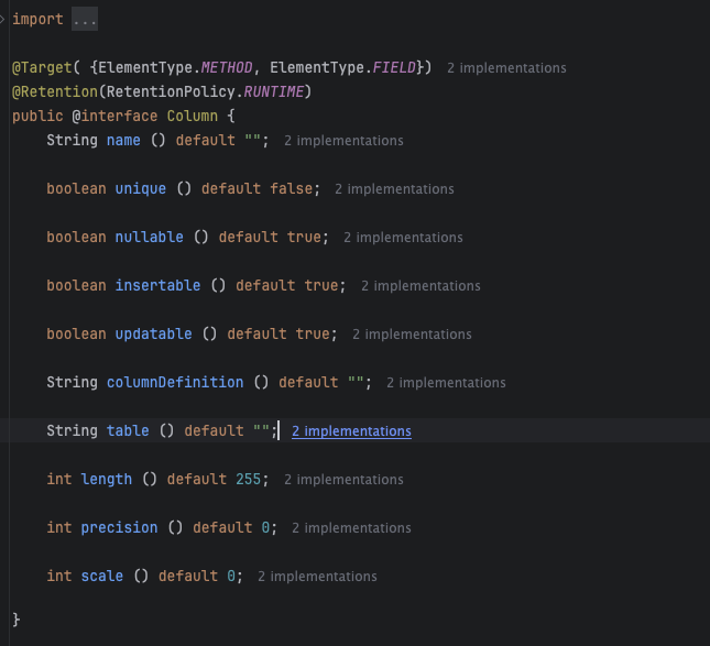 위 코드는 @Column 어노테이션 내부 로직 입니다.