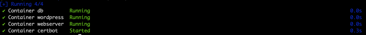 위 docker-compose 파일을 통해 db,webserver,wordpress,certbot 이 설치가 되었습니다.