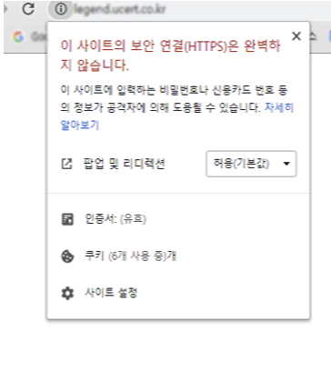 위 사진 처럼 돋보기 클릭을 했을 때, https 보안이 안전하지 않다고 나올 것 입니다.