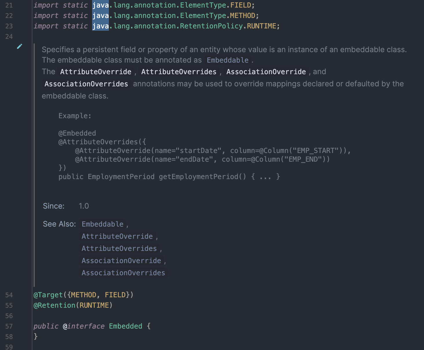 위 @Embedded 문서를 보면 뭔가 제가 설명한 것과 다르게 이상한게 많지 않나요?