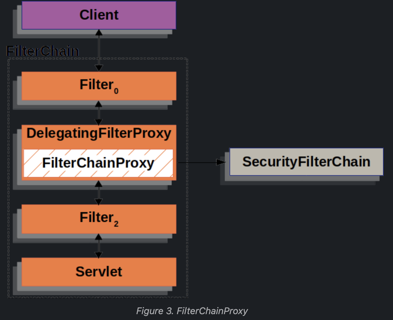 - DelegatingFilterProxy : 스프링 Bean 을 찾아 요청을 넘겨주는 서블릿 필터(=대표 필터)