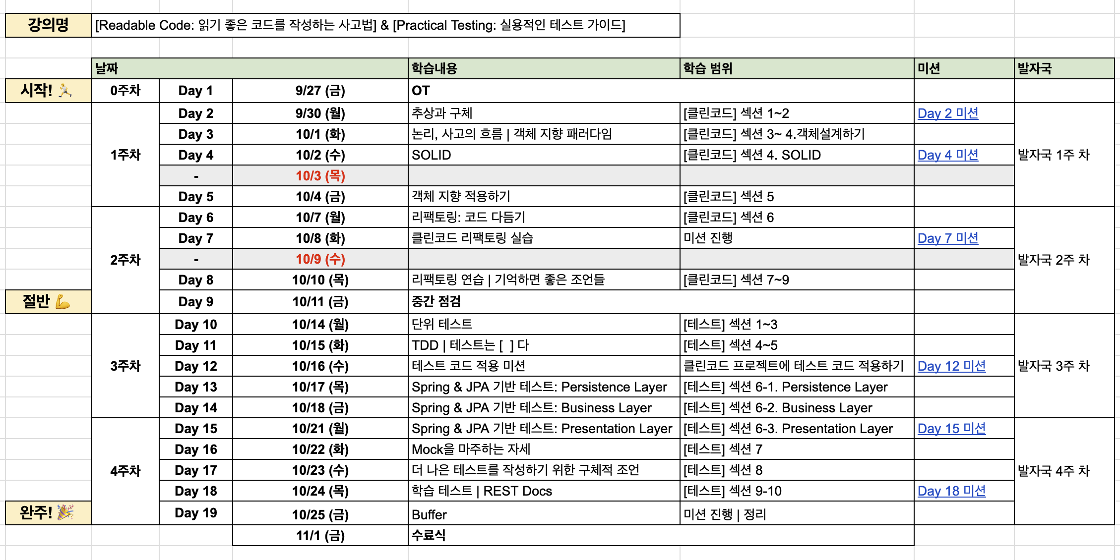 4주 커리큘럼은 아래와 같았다